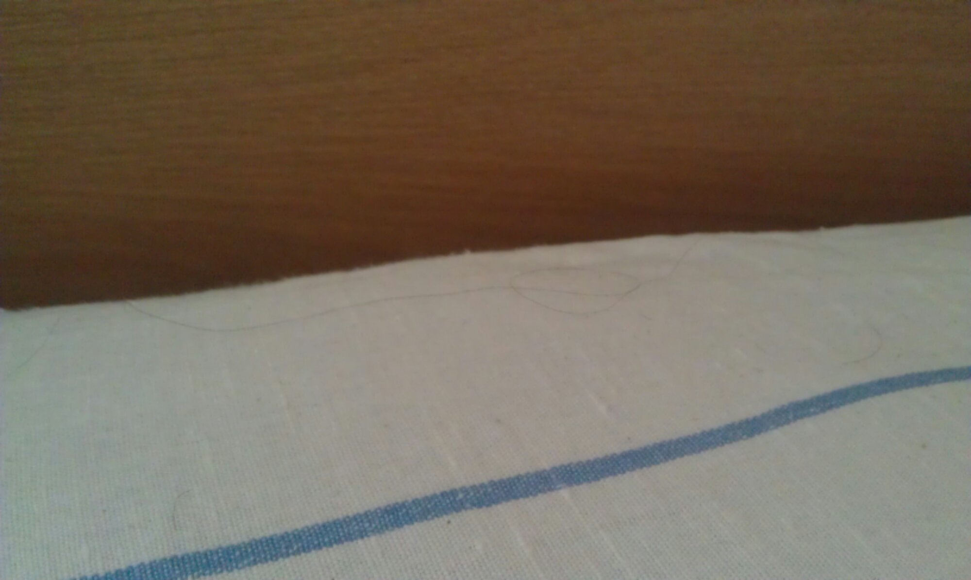 Somehow surviving the washing machine or maybe coming off something else a single strand of Her hair is laying on my bed sheets.